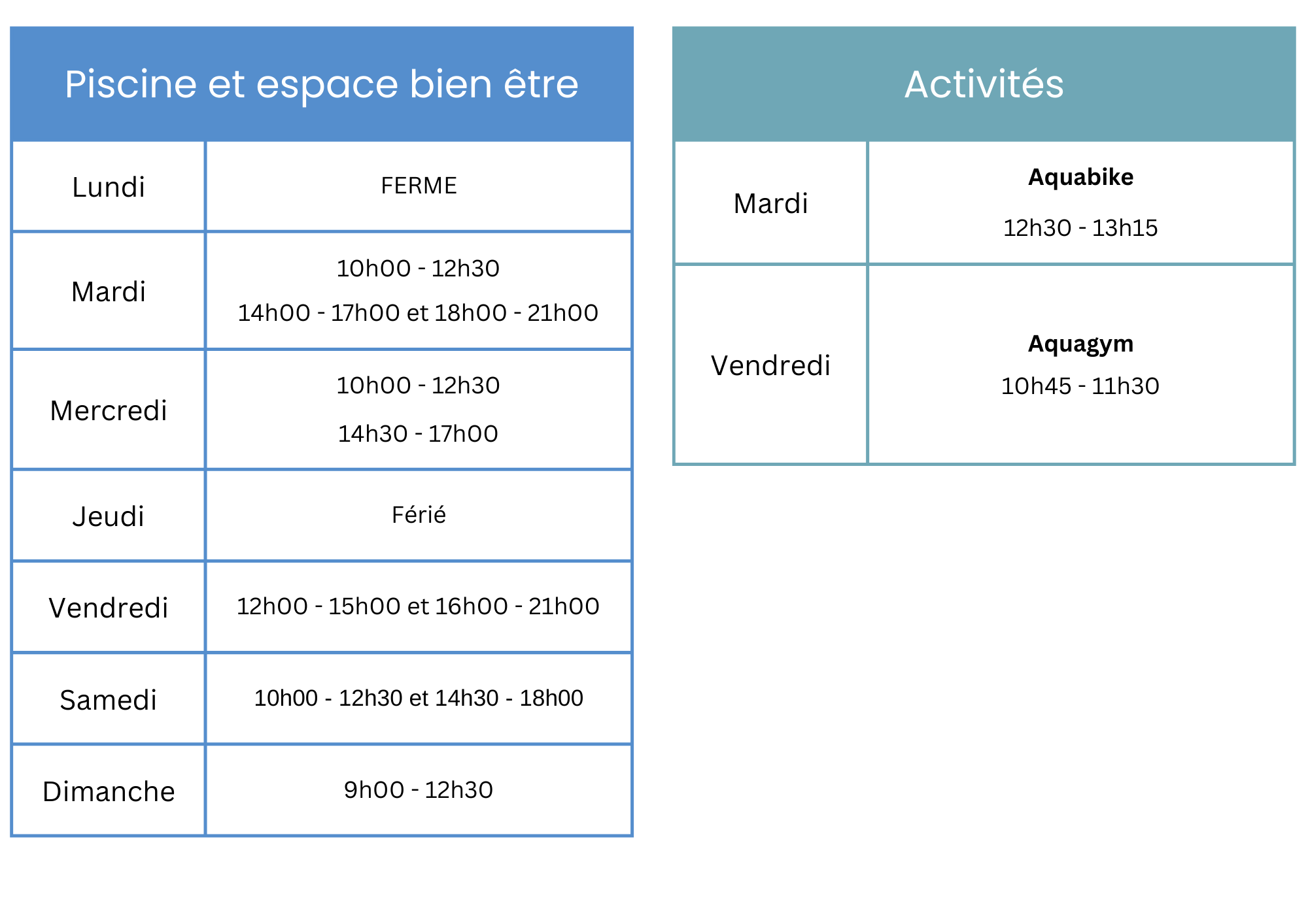 La baignade est libre et a lieu dans le bassin d’apprentissage (1m30 de profondeur, avec banquette à bulles).